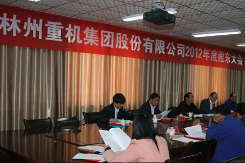 2013年4月16日下午14時,林州重機集團股份有限公司2012年度股東大會在公司一樓會議室以現(xiàn)場投票和網(wǎng)絡投票相結合的方式召開,參加本次股東大會的股東及股東代表共24人,代表公司股份328,572,401股,占公司有表決權股份總數(shù)的61.0356%,其中,現(xiàn)場出席會議的股東及股東代表14人,代表股份328,309,380 股,占公司有表決權股份總數(shù)的60.9867%;通過網(wǎng)絡投票方式參加會議的股東10人,代表股份263,021股,占公司有表決權股份總數(shù)的0.0489%。